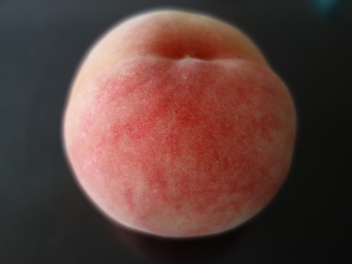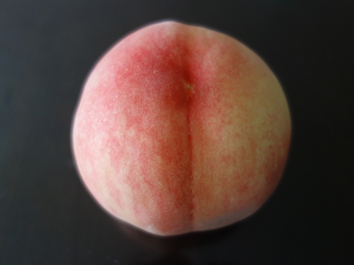 さらに違う角度から撮影。見た目はとてもきれいなあかつき桃です。
