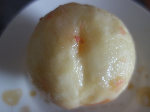 もう少し熟したら皮が全部剥がれるところだったのですが、どうしても頂上部分が剥がれなかったので、包丁で剥きました。
