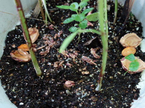 右側が室温で2日放置して殻を割った種。左側は4日間冷凍庫に入れてから殻を割った種。冷凍保存した方は少し萎びていたのが気になります。