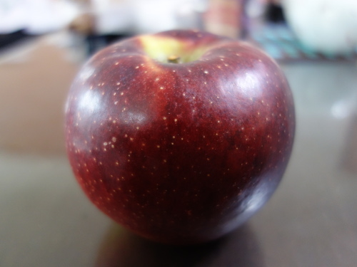 赤くて形が良いのを買ってきました。ビートルズのレコードのレーベルのような良い形でした(青りんごではありませんが)。