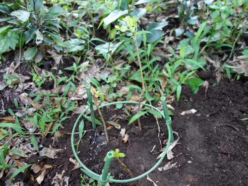 地植えしました。手前がきおうの実生。右上がさんさの実生。左上が高徳の実生。このきおう(No.2)は酸味もほどよく、甘くて、いわゆる青リンゴという感じの味です。私はこの感じは黄色いきおう(No.1)より好きです。種は別々に植えました。