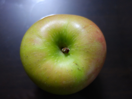 割と青いけれども日光に当たって赤くなった個体の食感と味を確かめてみます。