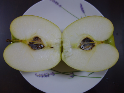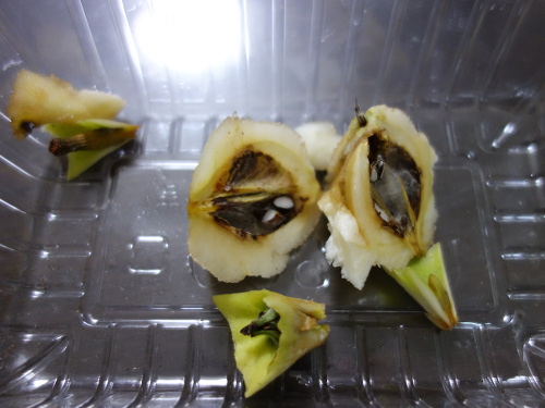 青くてほとんど日光に当たっていないと思われる個体の食感と味を確かめてみます。