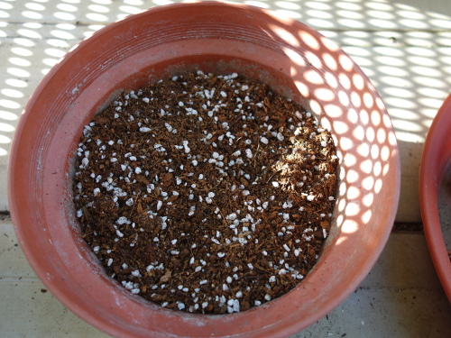 市販の培養土を入れました。