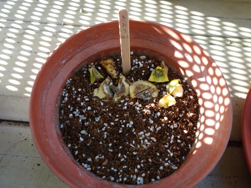 2016年3月15日、3個目のきおうから発芽が見られました。前の2個も16日には発芽が確認できました。