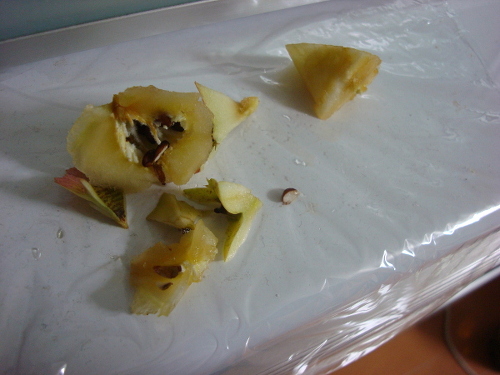 サンふじの芯とへたの部分。