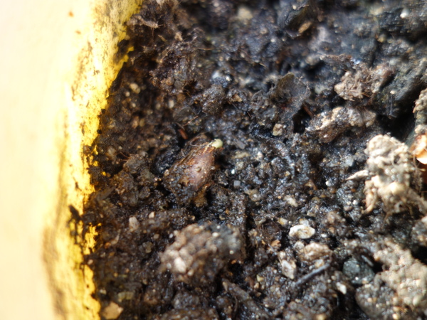 ふじは接ぎ木の苗木を育てたことがありますが、カミキリムシの幼虫に食い尽くされ、枯れてしましました。なので、苗木を育てること自体はそれほど興味はないのですが、種から発芽するかどうかに特化すれば興味があります。よって、小さなオリポットに土を入れて、芯の部分ごと種を置いてみようと思います。2014年11月27日(木)に蒔きます。