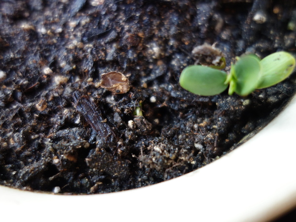 ふじは発芽率ほかのりんごに比べると良いようです。2015年2月15日に2本発芽していましたが、その2日後にはさらに3本見つけました。2月17日現在で合計5本あります。