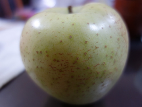 早生王林を食べて種を蒔きました。早生王林はジャンボ王林と同じもので、青りんごの大玉品種だそうです。王林の改良版に相当するものです。私はてっきり普通の王林が早くできたので早生なのかと思っていたのですが、ちょっと大きい王林だなとは思っていましたが、実際は別物とのこと。それでは皮ごと食べてみます。