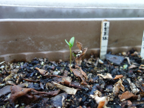 2016年3月7日、1本発芽していました。最初種を置いた場所から少しずれています。水遣りの時にずれたようです。