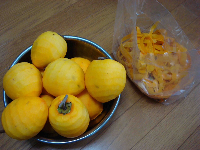 外は雨ですが、皮を剥いて吊るしたいと思います。