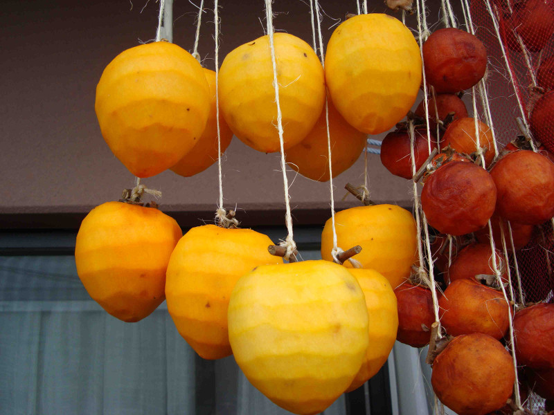 もともと小さくて丸い渋柿(名前は知りません)の干し柿作りを先に始めました。それから2週間遅れでこの愛宕柿の干し柿を始めました。12月13日には横野柿の干し柿を始めました。