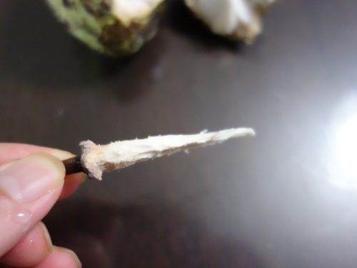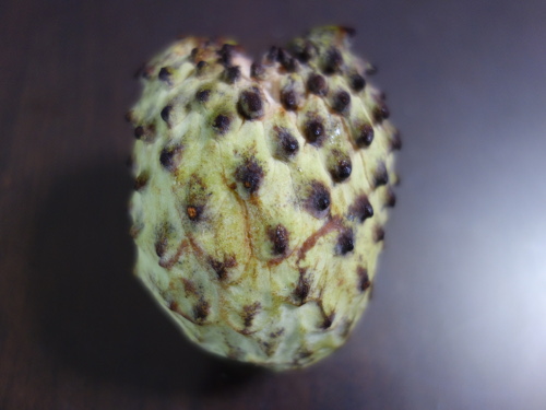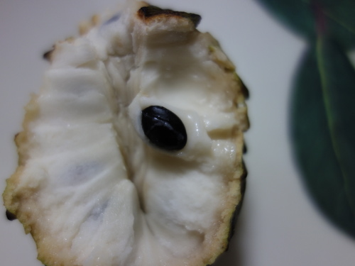 アテモヤの果柄を外しました。食べたら少しだけ甘かったです。