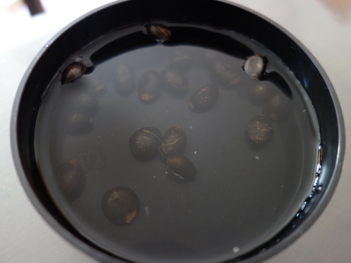 アテモヤの残り22個の種を水に浸けました。