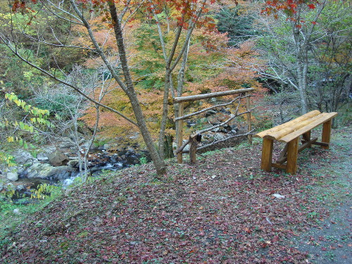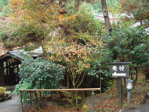 さすがに12月に行った時は紅葉もほとんどありませんが、11月上旬であれば、紅葉も見られました。宿泊ではなく紅葉だけ見たい場合は、立ち寄り湯だけのために行っても見られます。下に駐車場があり、入浴料の料金表が表示して(立てて)あります。