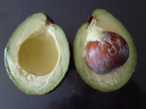しかし、そういった細部がわからなくても店でアボカドを選ぶ時にとにかく重いアボカドを選べばいいことになりませんか。同じ値段で小さいアボカドは、よっぽど種が小さくない限りお得ではありません。大きいアボカドほど果肉が多くてお得である可能性が高いことになります。逆に、大きいアボカドでお得でない場合というのは、種がめちゃくちゃでかくてその分果肉が少ない場合です。よって、できるだけ果肉の多いアボカドを選ぶコツは、できるだけ重い個体を選ぶことというのが、今回の検討の結論です。果柄の太さでは種の大きさはわかりませんでしたが、密度なら理論的に説明がつきそうです。