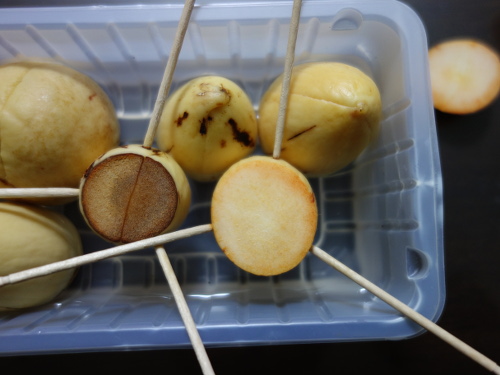 底部の断面は種の中の芯が1mm弱切れてしまいました。