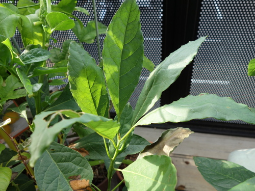 寄せ植えしていたアボカドの苗はすべて枯れてしまいました。生き残っているのはフェイジョアの実生だけです。