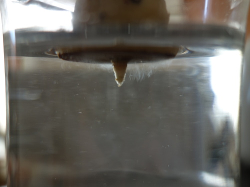 根が出てきました。底部を切る時に、芯を1mmほど切り落としてしまったのですが、どうやら大丈夫のようです。