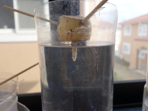 水栽培による発芽実験なので、発根と発芽の微小な変化は肉眼で観察可能です。特に、切り落とすことによって観察は容易になります。また、最初から土に植えてしまったら土の中の変化は掘り起こさない限り知ることはできないので、途中までは水栽培して、発芽したら土に移すのが合理的だと思います。