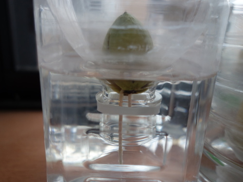 トップページ > 果樹の栽培記録 > アボカドの外観から種の大きさの予測 > アボカドの種(No.5)の水栽培