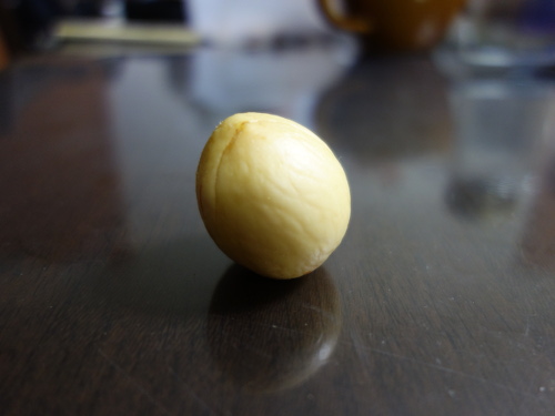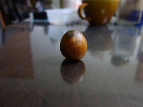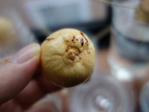 この種は非対称に割れています。これまでの経験では、このような対称形でない種は発芽しにくいようです。