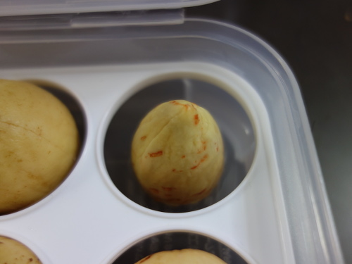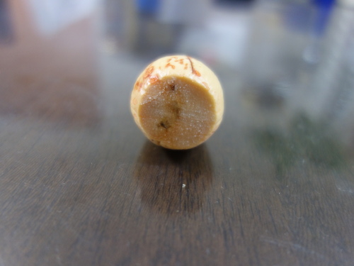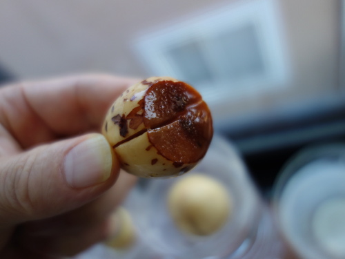皮は剥きにくかったので、カッターの刃で皮をめくりながら剥がしました。そのため、傷がついたところが褐色になっています。