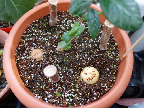 寄せ植えしていたアボカドの苗はすべて枯れてしまいました。生き残っているのはフェイジョアの実生だけです。