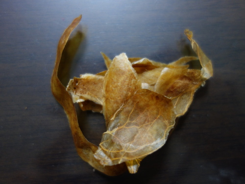 アボカドDの種の皮。割と簡単に剝けました。