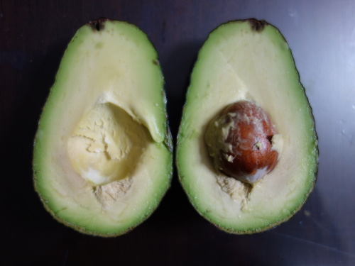 レッドキャベツで買ってきた98円の洋なし型のアボカドG。メキシコ産。