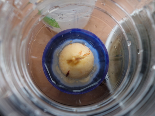 2017年1月19日にアボカドGを割ってみたら、種の頂部が傷んでいました。そのような種の発芽挙動を見る為に水栽培を始めました。切らずにそのまま用います。