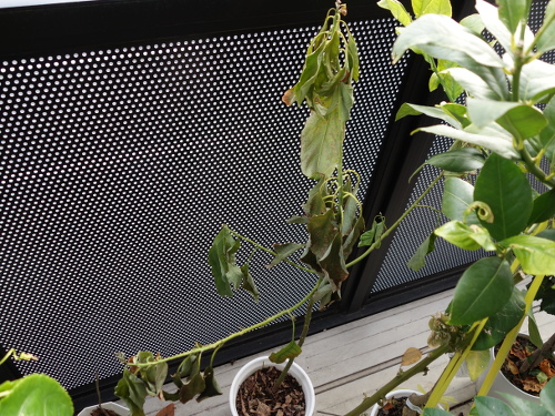 2018年1月10日の寒波の時にベランダに置いていたところ、その後弱ってきて、枯れそうです。割と寒さには強い印象だったのですが、氷点下になるとさすがに枯れるようです。復活は難しいでしょう。