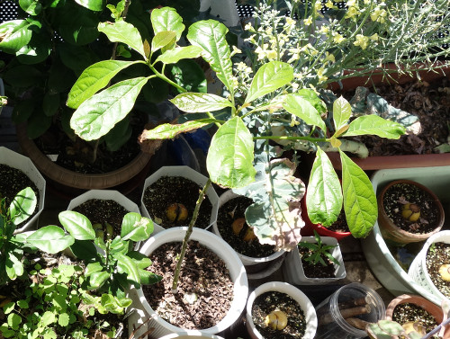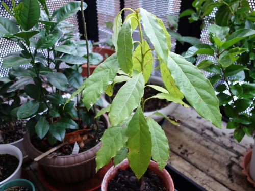 萎れていた葉っぱが復活しました。私の栽培している熱帯果樹の中では最も寒さに弱いのはパッションフルーツですが、その次はアボカドのようです。グァバの発芽した小さな苗も寒さで枯れました。