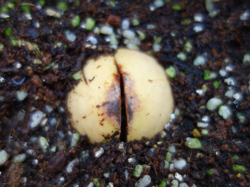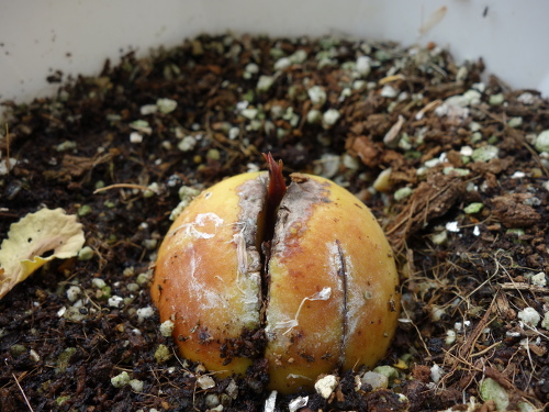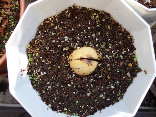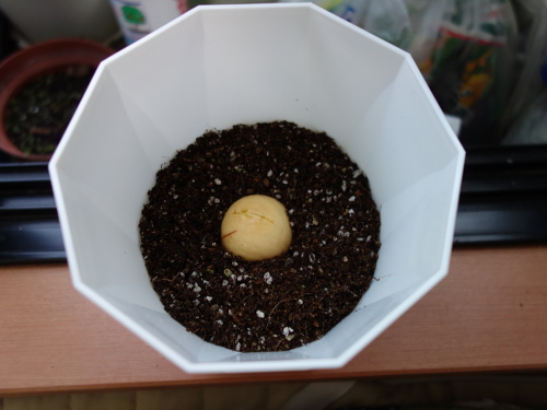 10月18日夕方にアボカドを切って、種を取り出しました。皮を剥いで鉢に播種しました。早ければ2〜3週間ぐらいで発芽してくれるかもしれませんが、これから気温が下がっていくので、どうなることでしょう。奇しくもNo.1を蒔いたのも昨年2015年の10月18日でした。ということは、もしかしたら発芽は来年に持ち越しということもあるかもしれません。