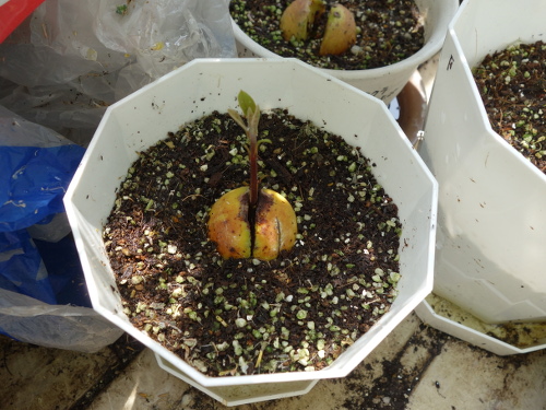 トップページ > 熱帯果樹の最短収穫 > アボカドの形と表面の観察 > アボカドの種の観察と播種 > ニュージーランド産のアボカドの実生の栽培