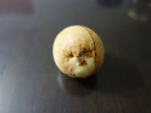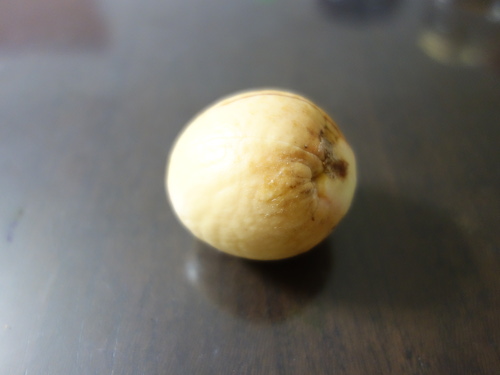 4日後、黒っぽくなってきました。触った感じではさほど軟らかい感じはないですが、割ってみることにしました。