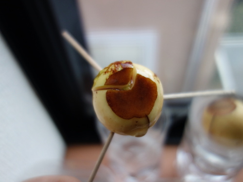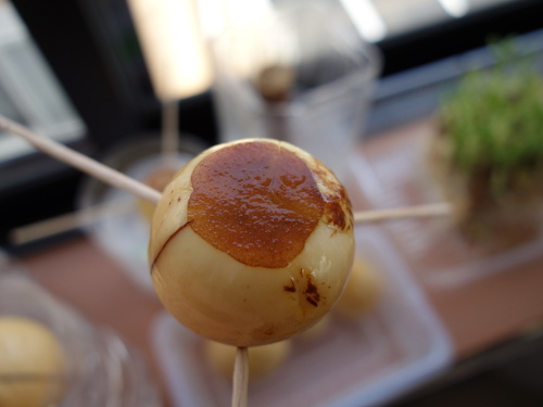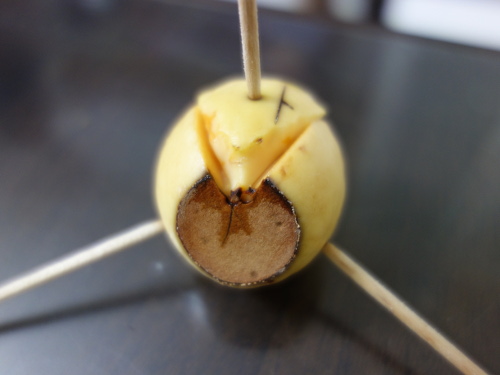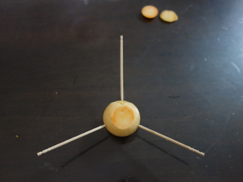 約120°の角度で3方向から爪楊枝を少しだけ上向きに刺しました。
