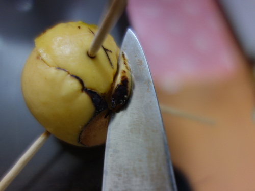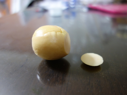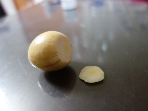 大きい方の種に左右2ヶ所切り込みを入れて取り除きました。