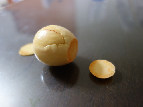 底部も120°の角度で割れています。この種は元々変な割れ目が入っていました。No.13の種もこんな感じの120°の割れ方をしていますが、No.13の方は車のベンツのエンブレムのようになっています。