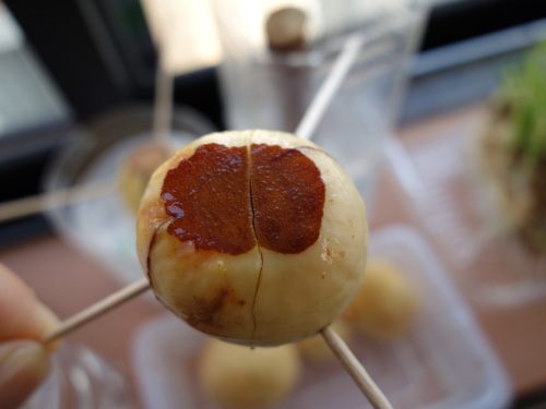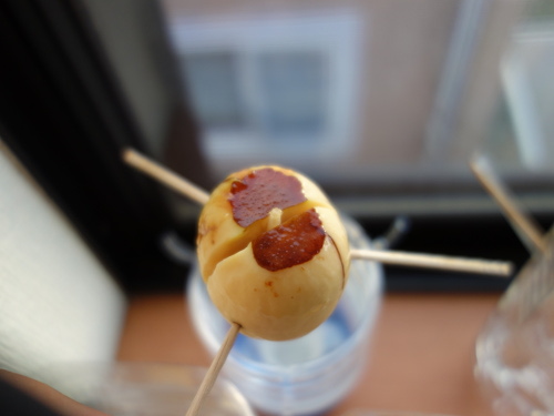 側面の中心付近に爪楊枝を若干上向きにして3本等間隔で軽く刺しました。
