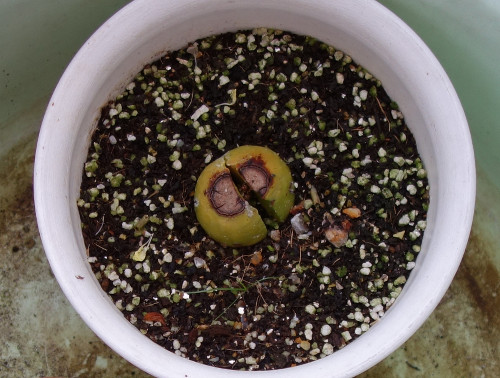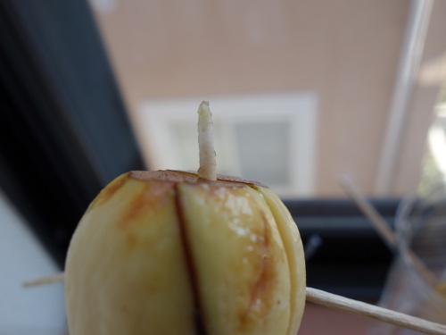 12月8日には割れ目が広がって底面から2mmほど根の先端が出てきていました。