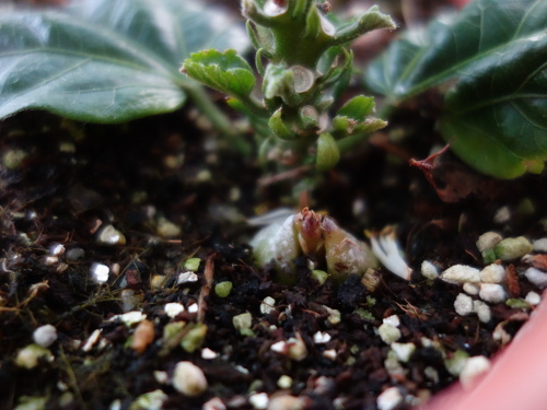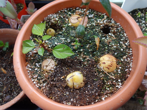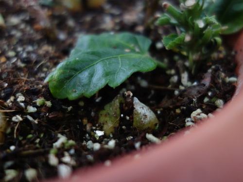 この鉢に植えてから2ヶ月後にやっと発芽していました。