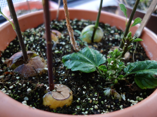 2018年3月4日現在、寄せ植えしていたアボカドの実生は全滅したことが確認されました。