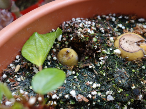 トップページ > 熱帯果樹の最短収穫 > アボカドの形と表面の観察 > アボカドの種の観察と播種 > どんぐり型のアボカドの種(No.18)の発芽実験