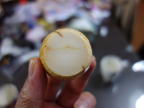 頂部の断面。端っこが癒着したままです。