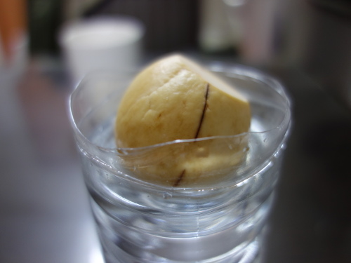 トップページ > 熱帯果樹の最短収穫 > アボカドの形と表面の観察 > アボカドの種の観察と播種 > 真球状の大きいアボカドの種(No.20)の水栽培
