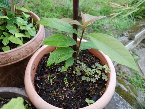 パパイヤの植えてある鉢に植えました。