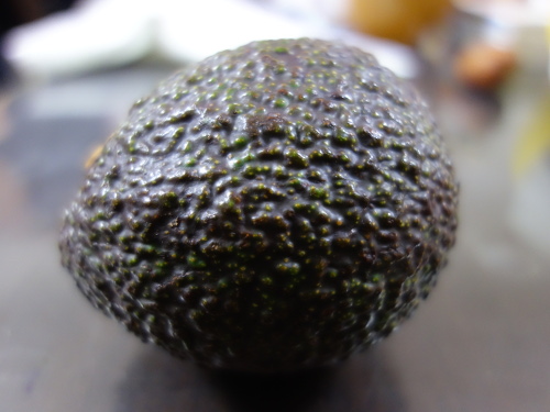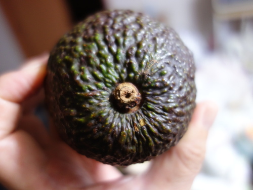 11月18日にスーパーストアだいのぶで買ってきた1個198円+税のニュージーランド産のアボカド通算4個目。丸いおにぎり型です。ほとんど洋梨型の商品の中で1個だけ丸いのがありました。