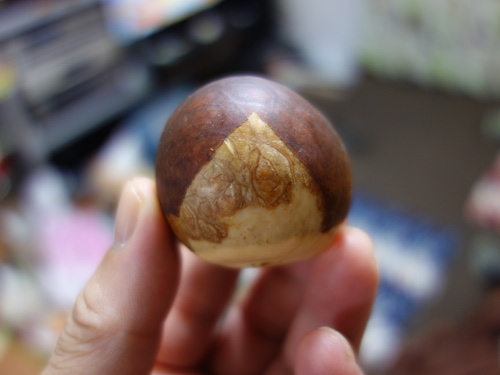 皮を剝いてみましたが、剥きにくい種でした。鬼太郎に見えます。