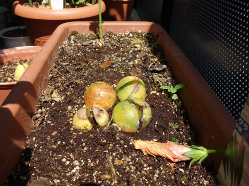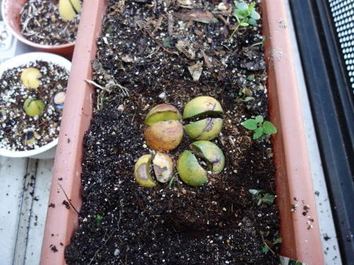 2017年5月30日、No.4, No.5, No.6, No.9の4個は処分しました。これでこれら4個の栽培は終了です。これら4個でわかったことは、一度発芽してから芽が潰れると、再び発芽するのは難しいということです。よって、植える季節は重要です。冬に植えても寒さで枯れてしまうので、高い確率で失敗するといえます。